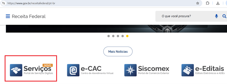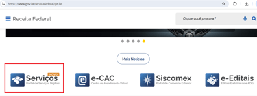 Acesse o site da Receita Federal (https://www.gov.br/receitafederal/pt-br) e localize abaixo das notícias: